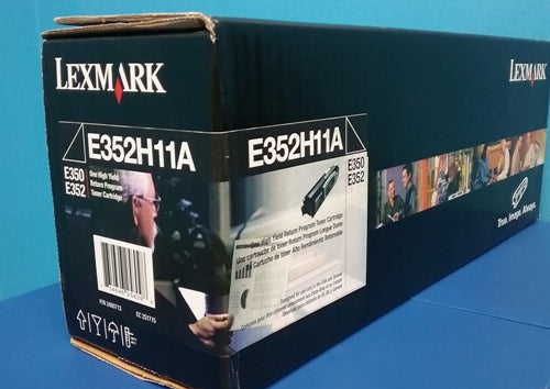 Lexmark Black return program toner cartridge is designed to work with E350, E352 model printers and yields up to 9000 pages. Cartridge uses monochrome laser technology for best image quality/reliable printing.Original Lexmark E352H11A toner cartridges are specifically designed to deliver professional quality results every time you print.