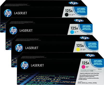 HP 125A toner cartridges deliver consistent yields and provide high-quality results, They're designed to work with HP printers for rapid, hassle-free colour printing, and they'll work reliably from the first picture to the last chart you print. This package contains Yellow, Magenta, Cyan, Black cartridges that combine to create any colour you need for your prints.