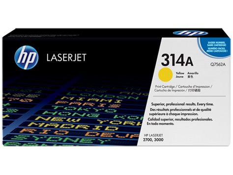 This is an original Hewlett Packard Q7562A (314A) yellow laser toner cartridge for your Hewlett Packard laser printer. The original Hewlett Packard Q7562A laser toner cartridges and supplies are high quality, reliable toners with exceptional yields. Print excellent, crisp pages ideal for both home and office use with the original Hewlett Packard Q7562A toner cartridge.