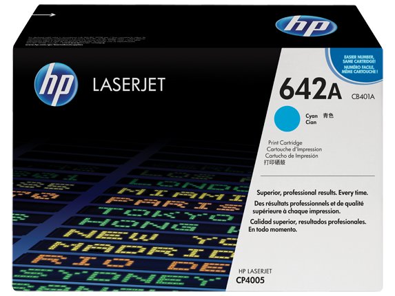 This is an original Hewlett Packard CB401A (642A) cyan laser toner cartridge for your Hewlett Packard laser printer. The original Hewlett Packard CB401A laser toner cartridges and supplies are high quality, reliable toners with exceptional yields. Print excellent, crisp pages ideal for both home and office use with the original Hewlett Packard CB401A toner cartridge.