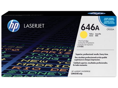 This is an original Hewlett Packard CF032A (646A) yellow laser toner cartridge for your Hewlett Packard laser printer. The original Hewlett Packard CF032A laser toner cartridges and supplies are high quality, reliable toners with exceptional yields. Print excellent, crisp pages ideal for both home and office use with the original Hewlett Packard CF032A toner cartridge.